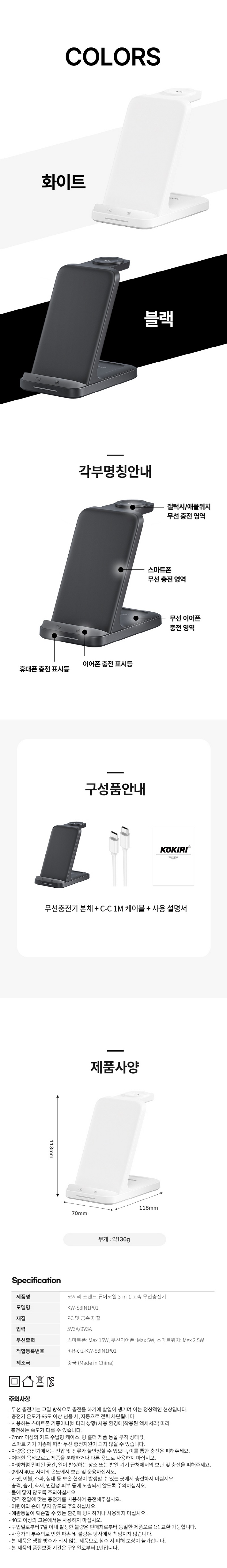 ÄÚ³¢¸® KW-S3IN1P01 ½ºÅÄµå µà¾îÄÚÀÏ 3IN1 µ¿½ÃÃæÀü °í¼Ó ¹«¼±ÃæÀü±â(¿öÄ¡Àü±âÁ¾È£È¯)